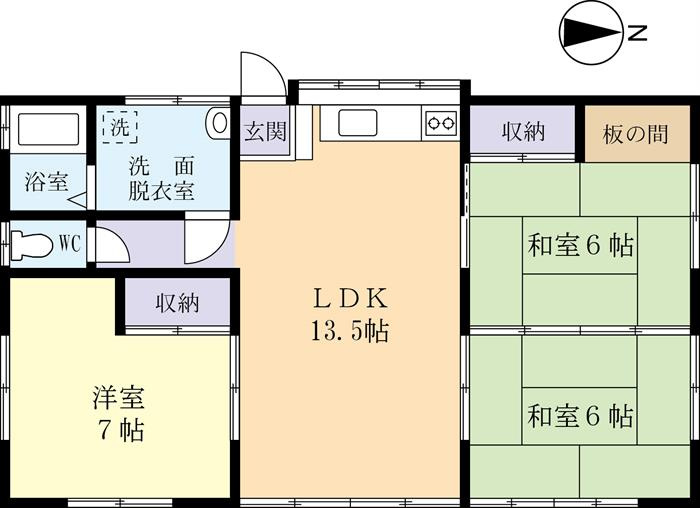 | 間取り/詳細 | 3LDK/LDK 13.5畳、和室 6.0畳、和室 6.0畳、洋室 7.0畳 | ||